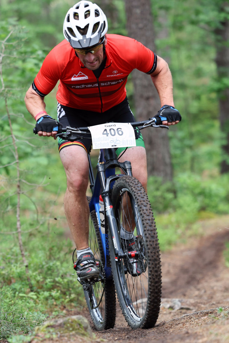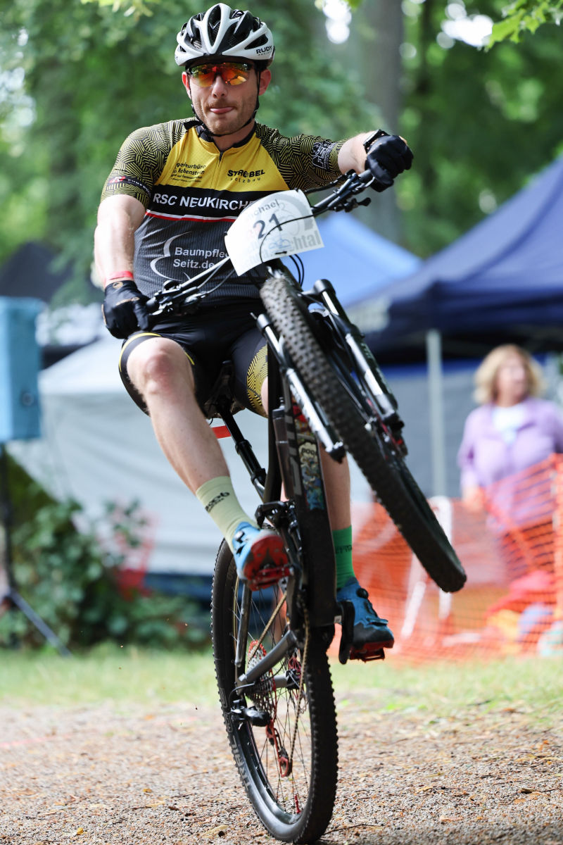 So viele Sieben-Kilometer-Runden wie möglich zu fahren war das Ziel der Mountainbiker beim 12-Stunden-Rennen in Schnaittach. Schon seit Jahren ist der RSC Neukirchen dort gut vertreten; auch nach drei Jahren Pause lockte die „flowige“ Schnaittacher Strecke wieder nach Mittelfranken. Bei bestem Wetter wagte sich Michael Neumüller als Einzelstarter auf die Strecke. Taktisch clever startete er das Rennen verhalten, um im Laufe des Tages sich beständig nach vorne zu arbeiten. Bis zum Zielschluss um 20 Uhr schaffte glatt 30 Runden und somit 210km, was ihm den starken fünften Rang in der Herrenklasse bescherte. Ebenso auf Platz fünf landete das Neukirchner Vierer-Staffelteam mit Simon Kohl, Gerd Mandel, Stefan Schertl und Christian Langhans nach 40 absolvierten Runden. Ein weiteres RSC-Team mit Maximilian Lier, Matthias Herrmann, Florian Ertl und Stephan Pugner erreichte nach 36 Runden Rang acht. Die einzige Damen-Vierermannschaft, ein gemischtes Team mit Eva Dengler vom RSC, schaffte beachtliche 30 Runden!
